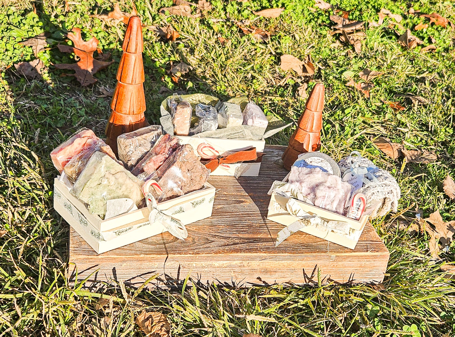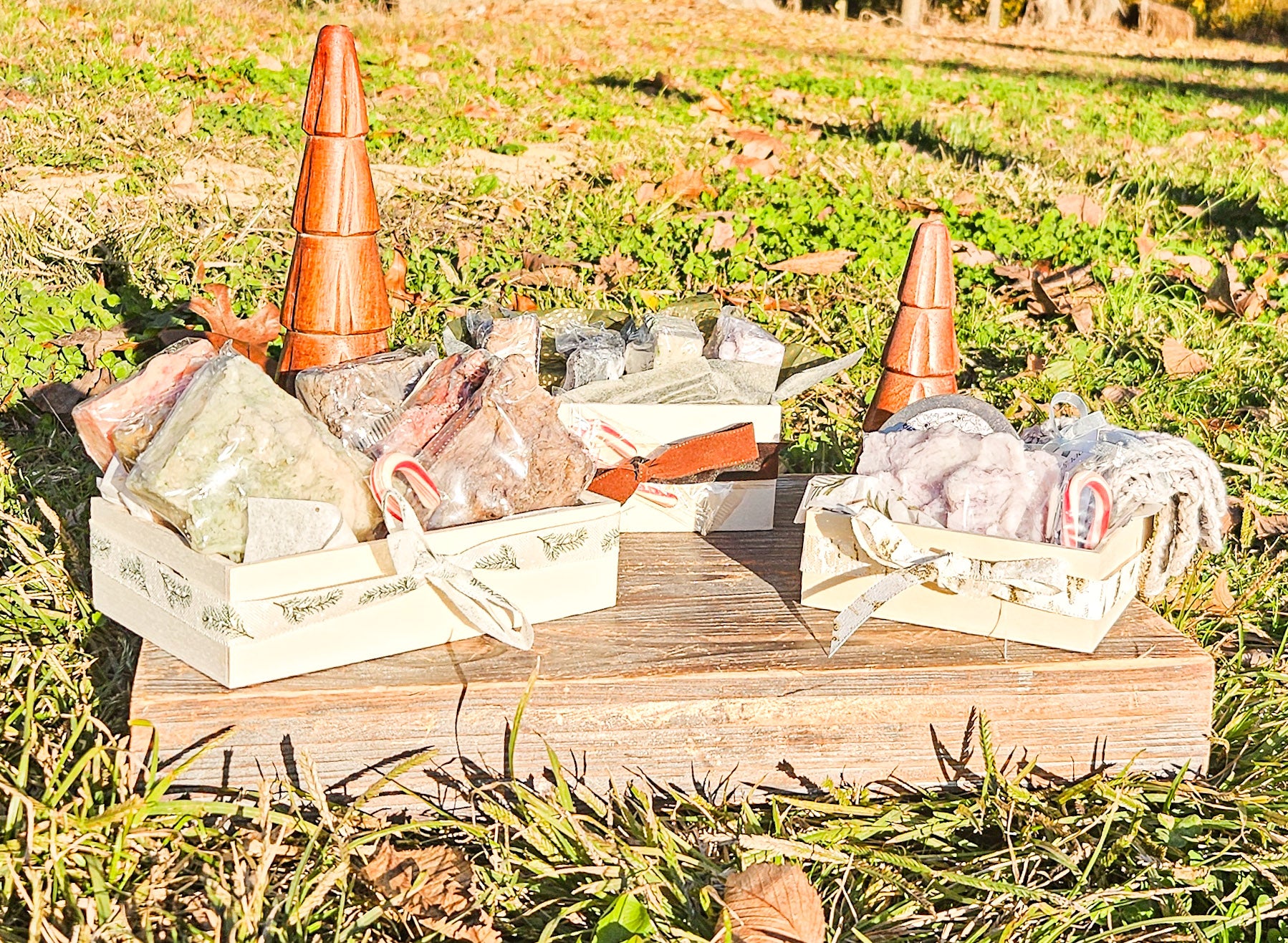 With a cute mini wooden crate lined with Christmas paper tied with a ribbon and topped with a mini candy cane, this is a great presentation for a gift!